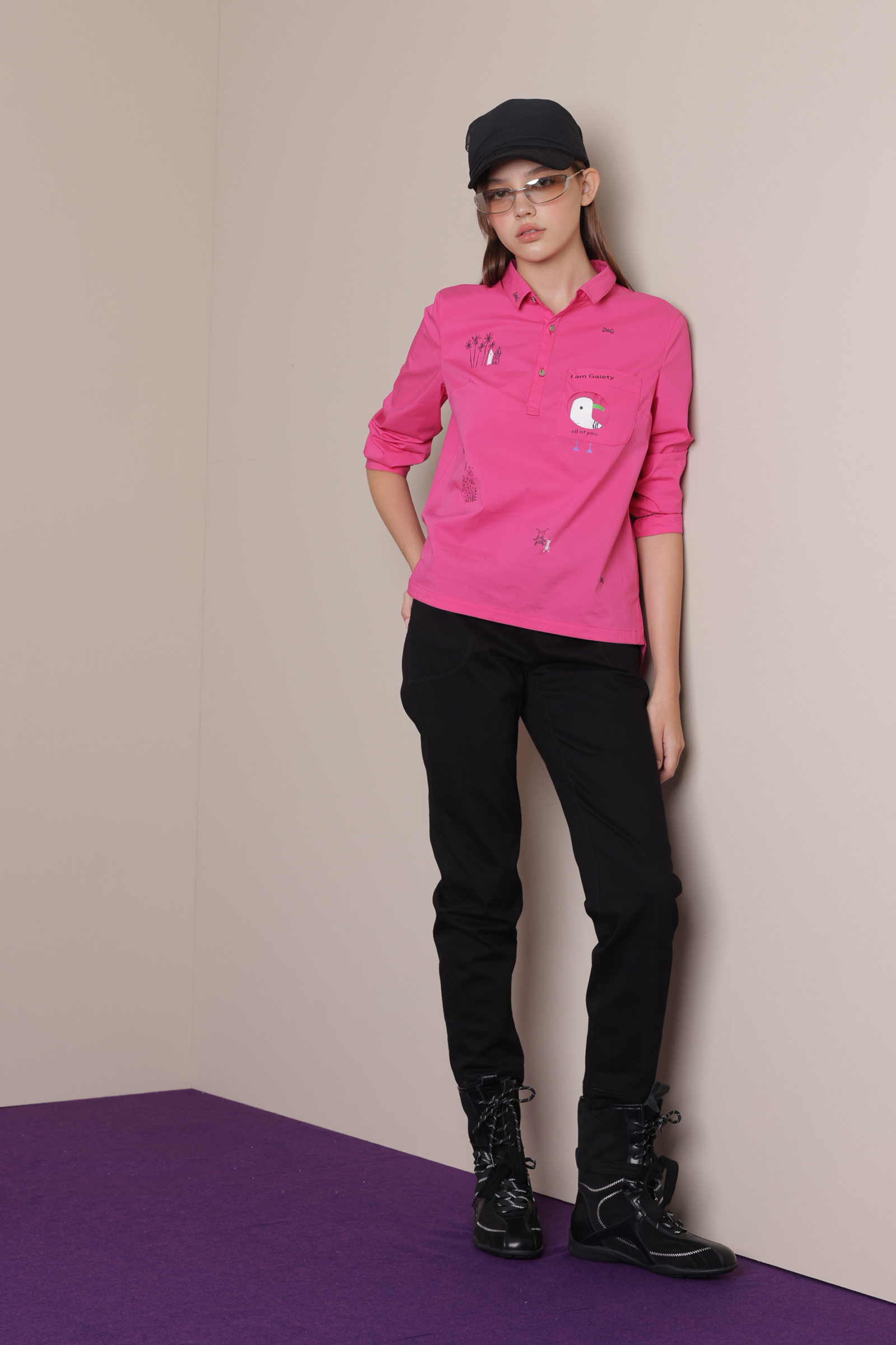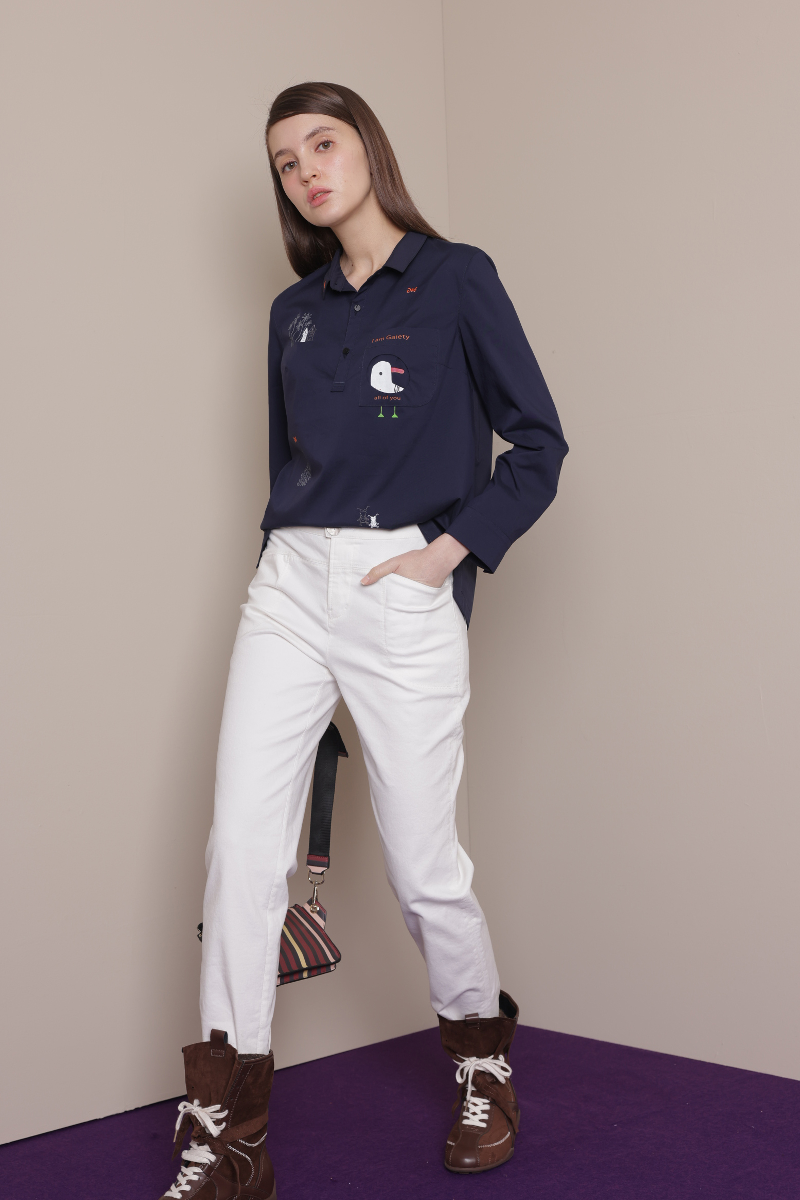 刺繡短版束口襯衫