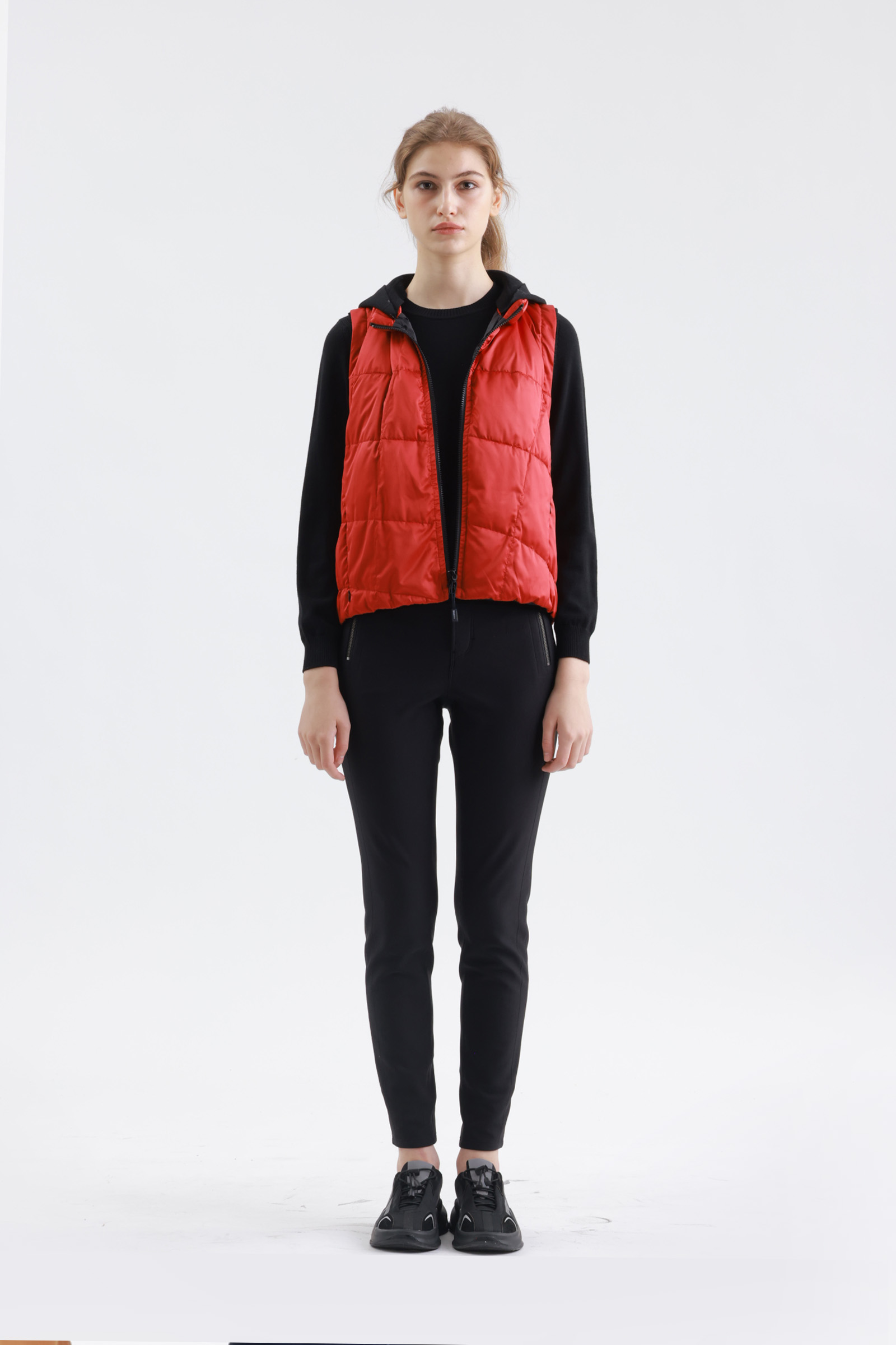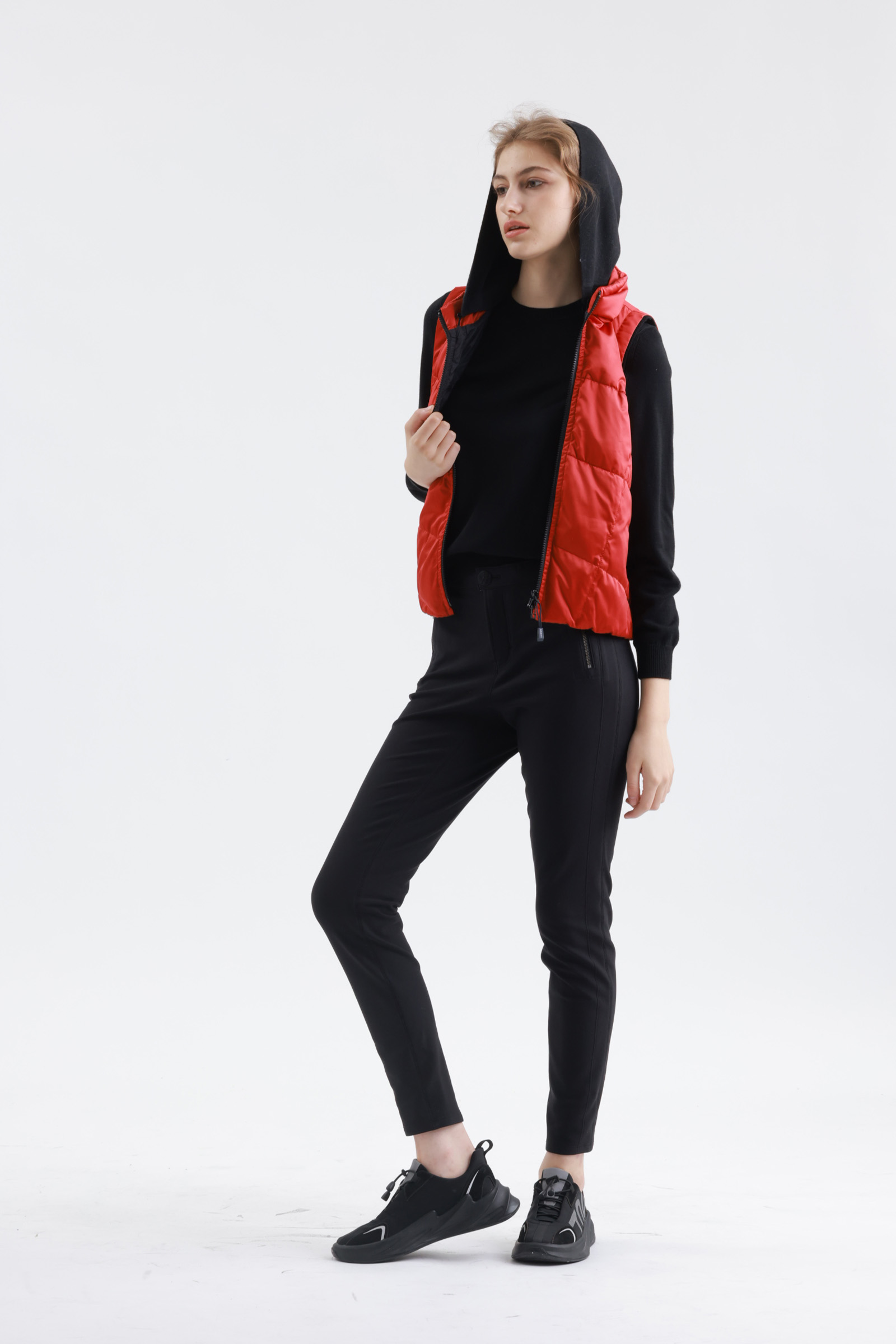 翻色保暖帶帽羽絨背心