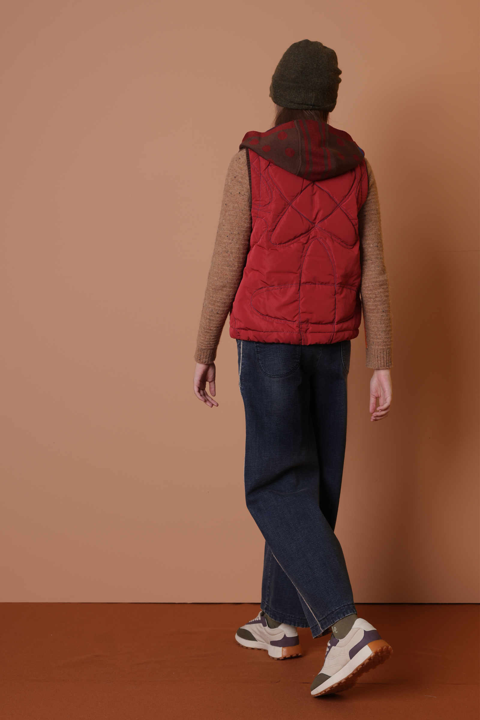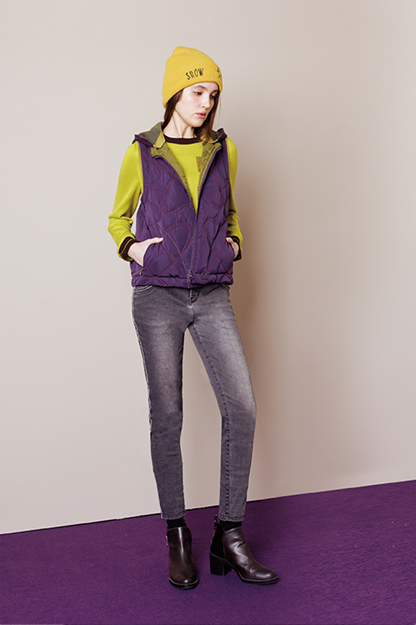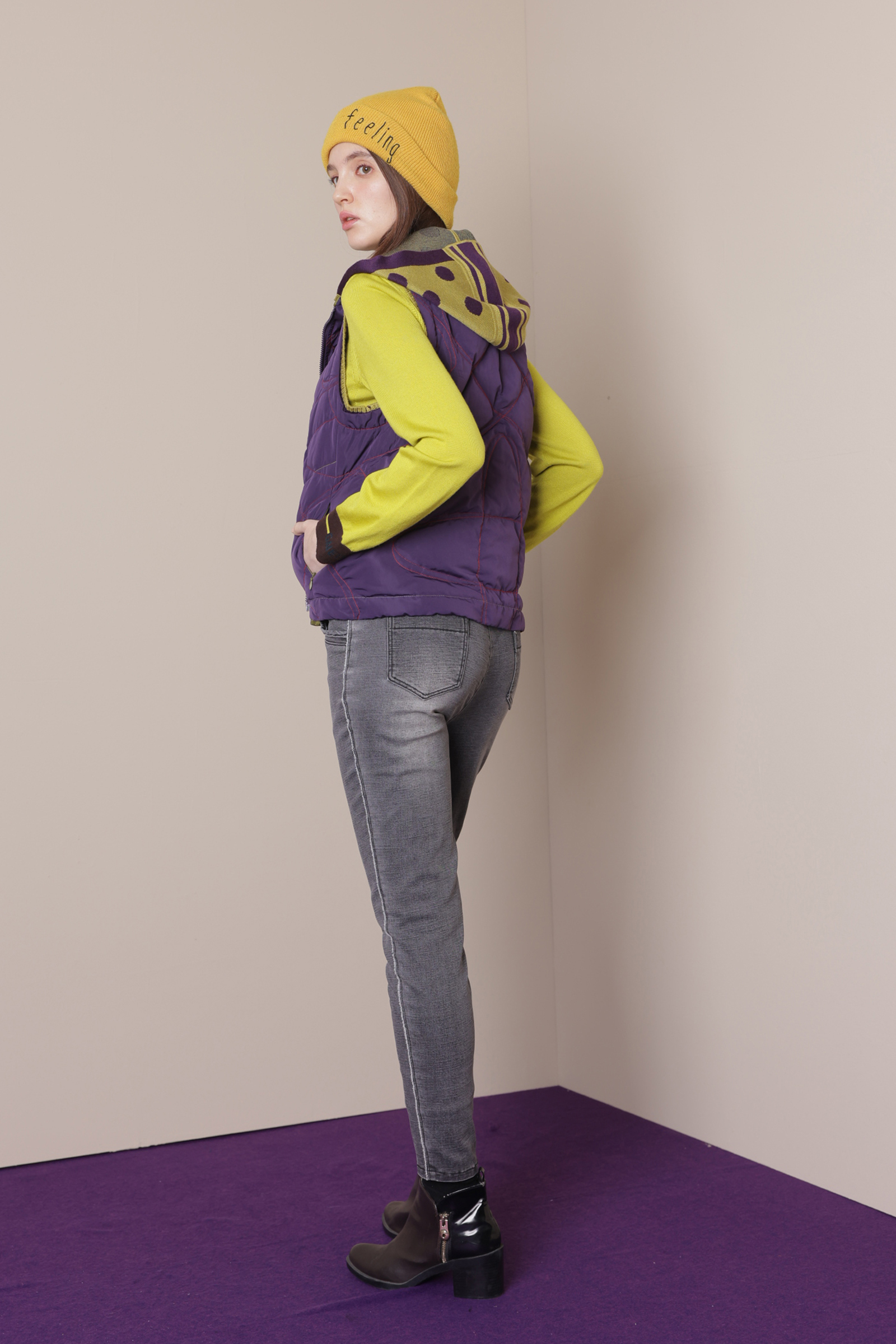 織趣波點羽絨背心