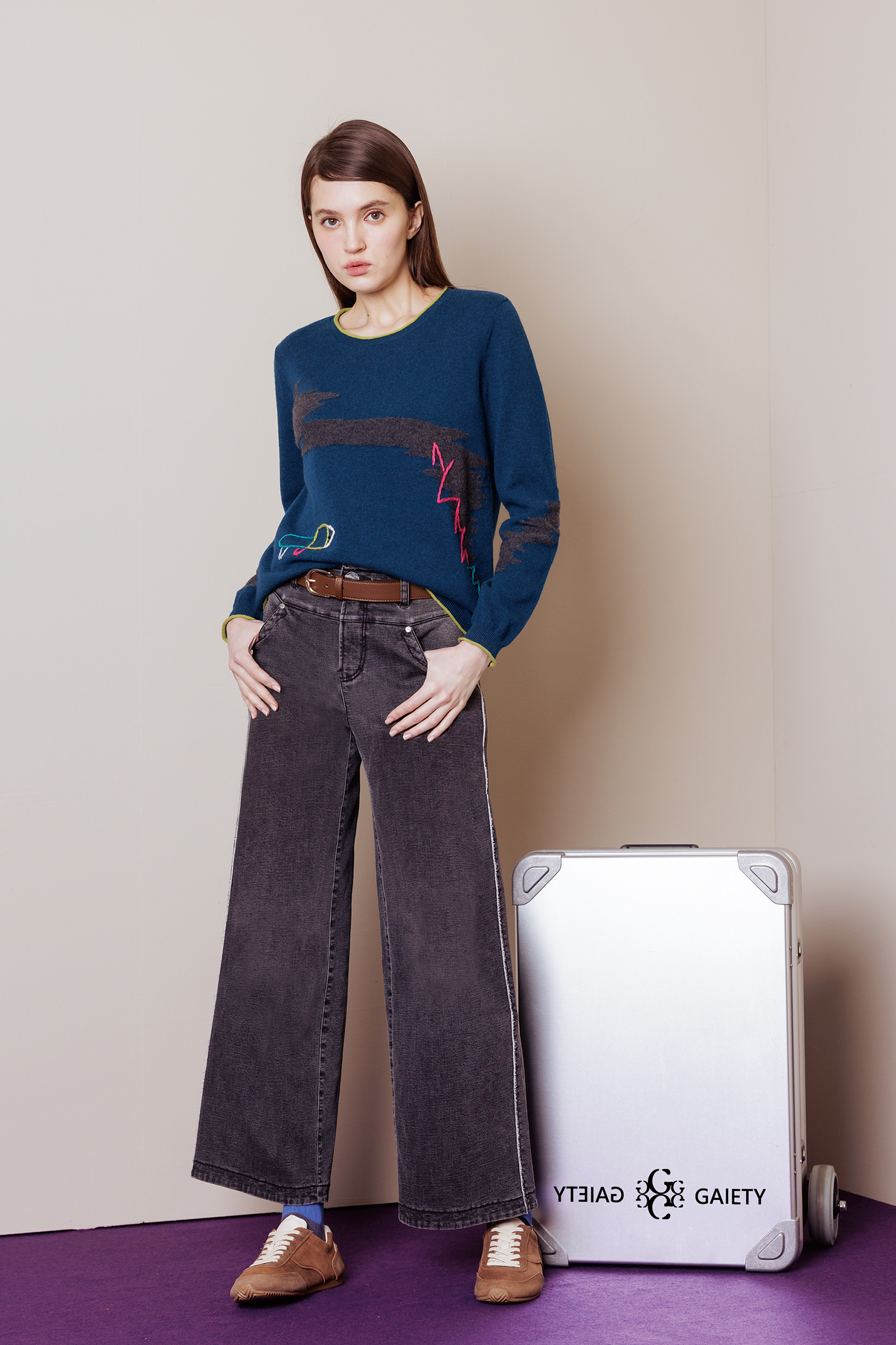 中性經典闊腿牛仔褲