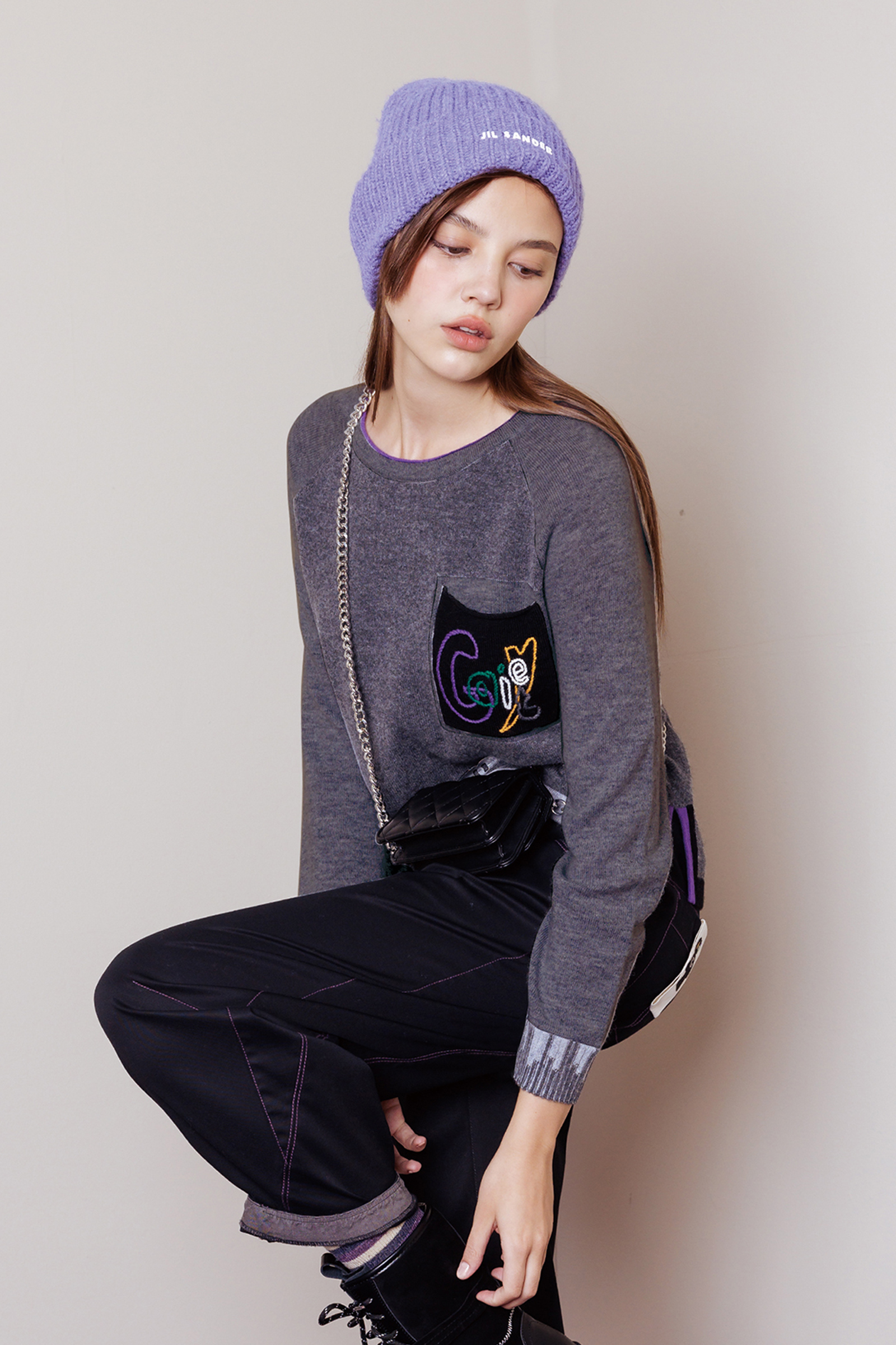 拼色繞字義大利紗針織上衣