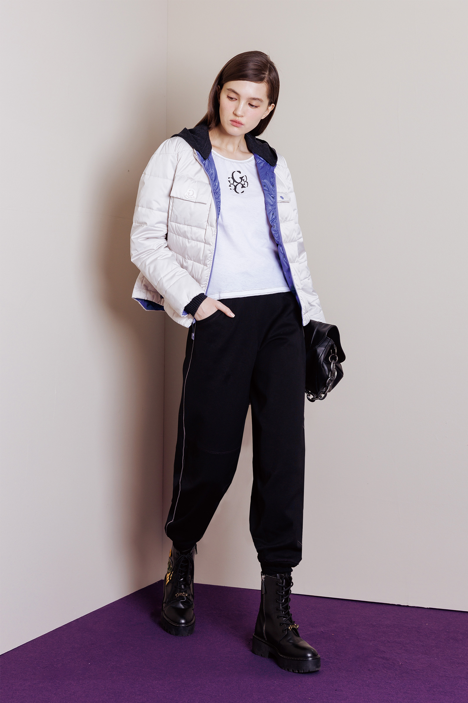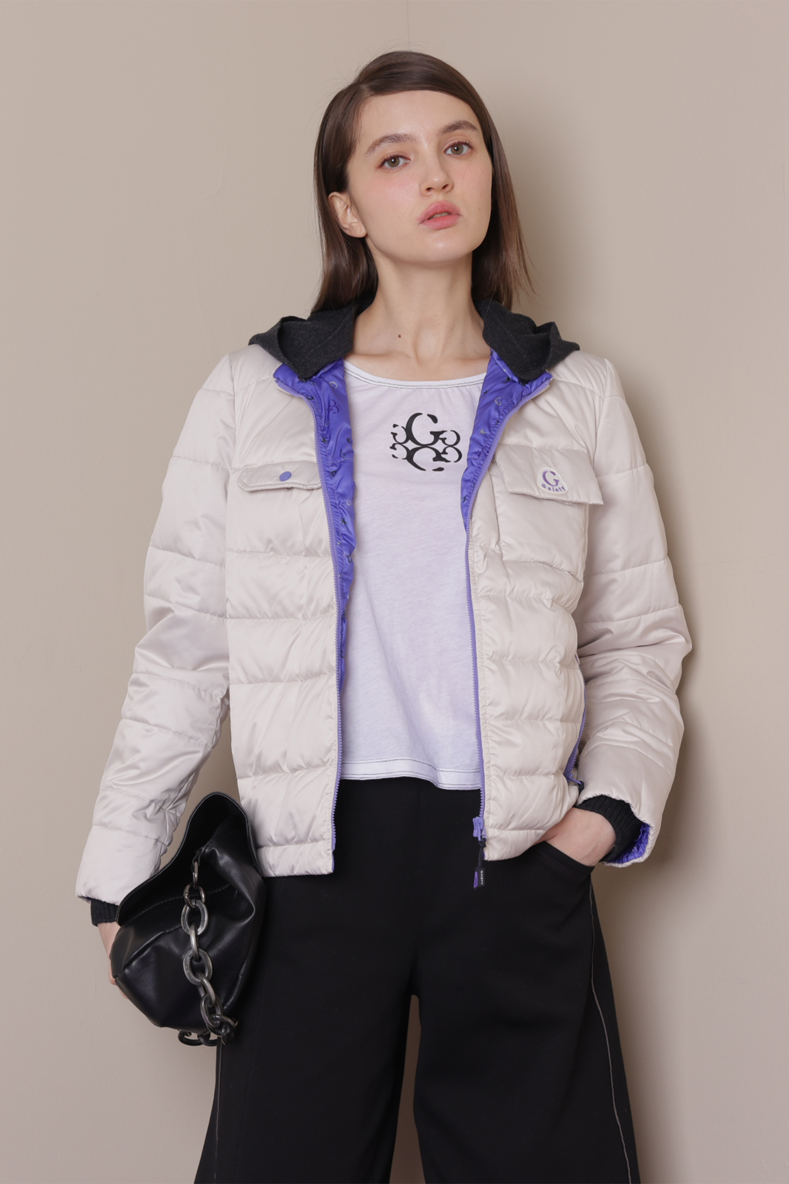 手繪線條壓紋羽絨連帽外套
